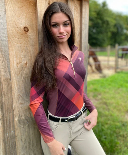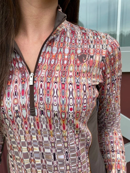Arista Quarter Zip Long Sleeve Shirtย in gorgeous Arista prints features high performance fabric and elegant details. Women’s UPF50 sun shirt has lots of stretch and super soft lightly brushed interior. The Brio-Tek fabric wicks moisture, dries fast, and is breathable. Arista Equestrian Quarter Zip print shirts are treated with an eco-friendly antimicrobial finish to inhibit odors.