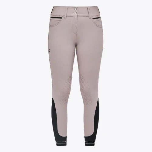 Cavalleria Toscana Silicone Logo Breeches in knee grip style are a riding wardrobe necessity with technical function and classic CT style. Ladies breeches have a high waist and contoured wide waistband that’s designed for flattery and riding comfort. Ergonomic seams and stretch socks ensure an outstanding fit.