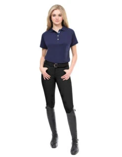 The Ladies Cool Rider Short Sleeve Shirt from Ovation Riding allows optimal air flow with its microfiber mesh weave fabric. The UV protective riding shirt from Ovation has a mock neck collar that is lined with soft fabric in a coordinating equestrian print. The Ovation Short Sleeve Cool Rider is not too sheer so it provides good coverage while still being comfortably lightweight and cool. Women’s riding apparel from Ovation is an outstanding choice for the latest technical riding comfort at a great low price.