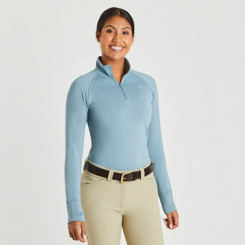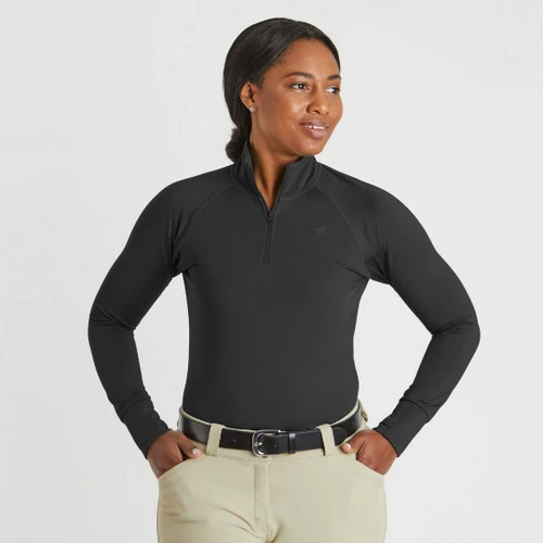 The material of the Piper Winter Essentials Baselayer is moisture wicking and quick drying to keep the chill away after your cold-weather rides. Plus, the inside is brushed for cozy softness and comfort next to your skin. The 1/4 zip gives you flexibility to determine how much coverage and protection from the elements you need, as well as adds some style to this baselayer. Wear it on its own or layer it with your favorite cold weather pieces. Whether youβre in at the barn or around town, the Piper Winter Essentials 1/4 Zip Baselayer will be your go-to warm shirt all season long!