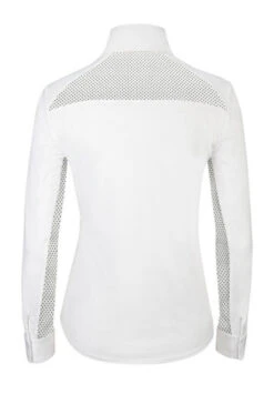The new RJ Classics Sofia Show Shirt will be a valuable part of your horse show wardrobe thanks to its versatility and high performance. Women’s Sofia long sleeve white show shirt is part of the RJ Classics Blue Label Collection of elegant, quality riding apparel at an excellent price. Classic cuffs and collar deliver a traditional look while fine stretch mesh under sleeves help riders manage the heat.