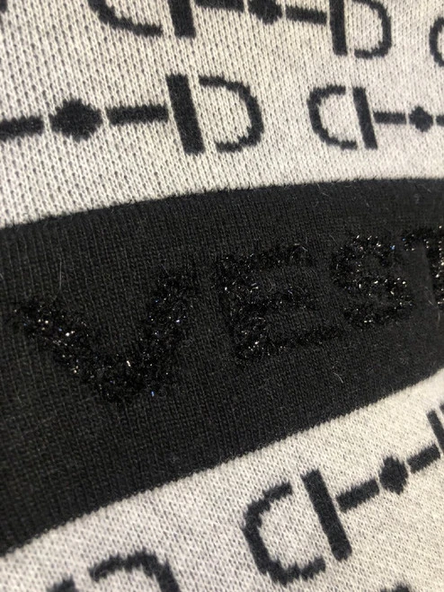 Vestrum Montagna Turtleneck has striking equestrian flair with a black bit intarsia pattern on a white background. The turtleneck and cuffs are solid black. A black stripe across the chest and sleeves has the Vestrum name and a logo in tonal metallic thread. Women’s Vestrum Montagna Turtleneck offers classing, sporting style with a modern edge.