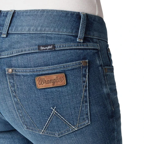 Wrangler Retro Mae Jean in Megan denim wash looks like classic denim jeans but offers outstanding stretchy comfort for easy riding. Women’s Retro Mae Jean is a mid rise (just below the waist) with contoured waistband for great coverage with no gaps. The Wrangler Western bootcut jean with traditional 5-pocket styling is perfect for riding and everyday wear.